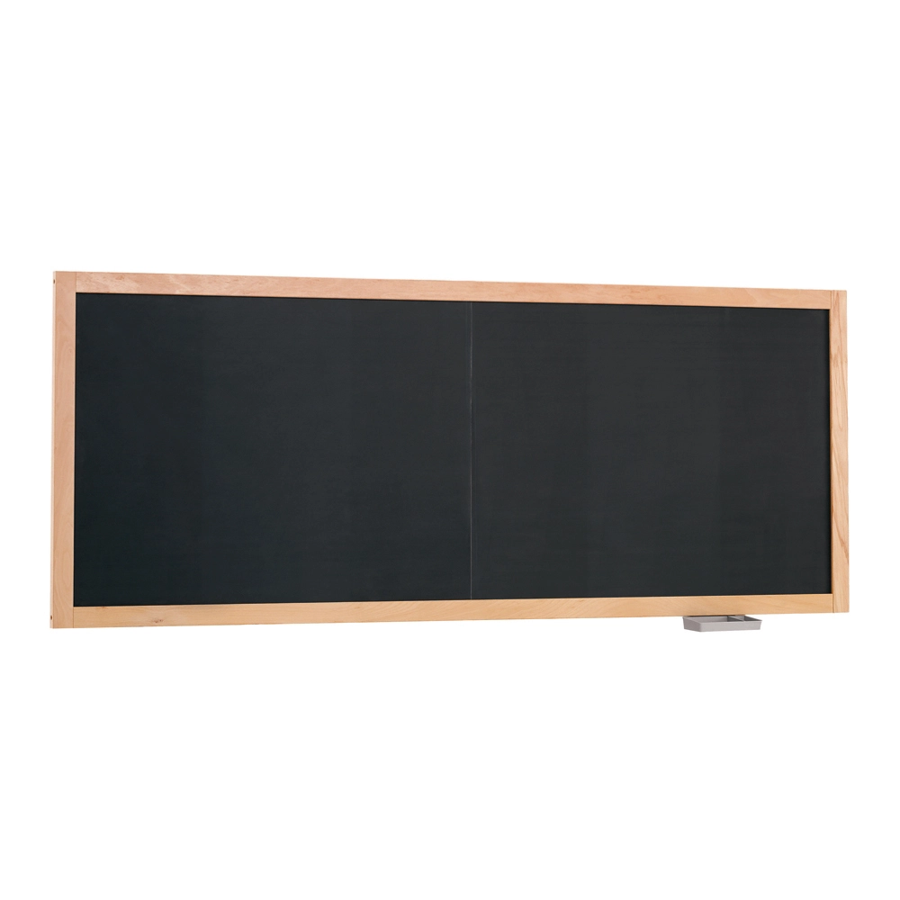 Piano di scrittura in laminato adatto alla scrittura con gessi. Cornice in legno massello di faggio verniciato al naturale con sistema misto di incastro e vite spessore 53x28 mm. ACCESSORI Corredato di vaschetta portagessi.
