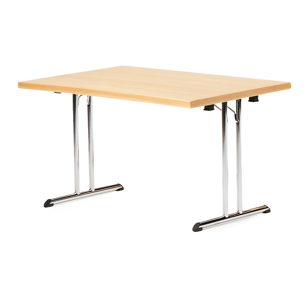 cromato pieghevole, con agganci e bloccaggio in ferro. Piano in legno truciolare nobilitato ambo i lati in classe E1 privo di formaldaeide. Bordo in ABS semirigido spessore 2 mm, con finitura in massa, arrotondatura a norma. Spessore totale del piano mm 25